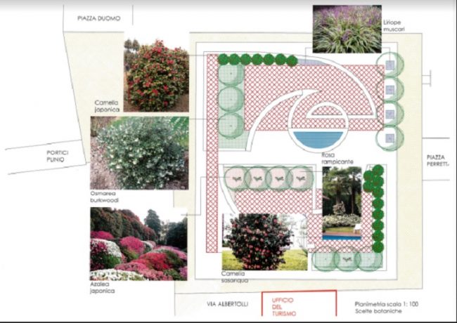 Punto di partenza di questo progetto è il rinnovo del verde, del quale si occuperò il Rotary Club Como Baradello, in particolare nella persona dell’architetto paesaggista Roberta Peverelli. La revisione del verde prevede l’inserimento di siepi sempreverdi e arbusti a fiore appartenenti al più tipico repertorio botanico del Lago di Como, con la rinnovata presenza delle palme, arrivate in città a fine Ottocento.