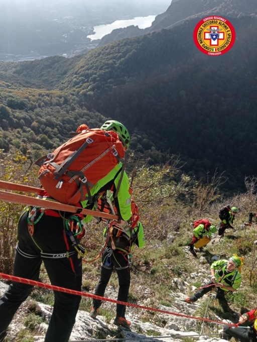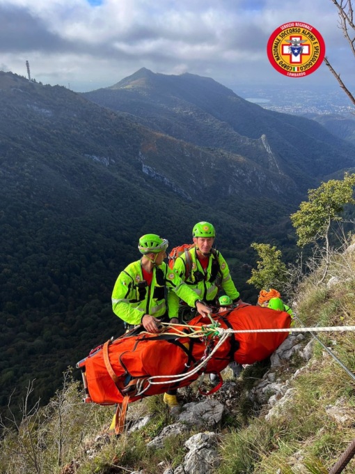 Salvato un ferito ai Corni di Canzo… Ma era un’esercitazione dei tecnici della Stazione Triangolo Lariano della XIX Delegazione del Corpo Nazionale Soccorso Alpino e Speleologico. Si è tenuta ieri, sabato 28 ottobre, a partire dall’alba: una ventina di tecnici, tra cui due sanitari, con la guida di tre istruttori regionali, sono saliti in quota e hanno simulato l’evacuazione di un ferito dalla ferrata.