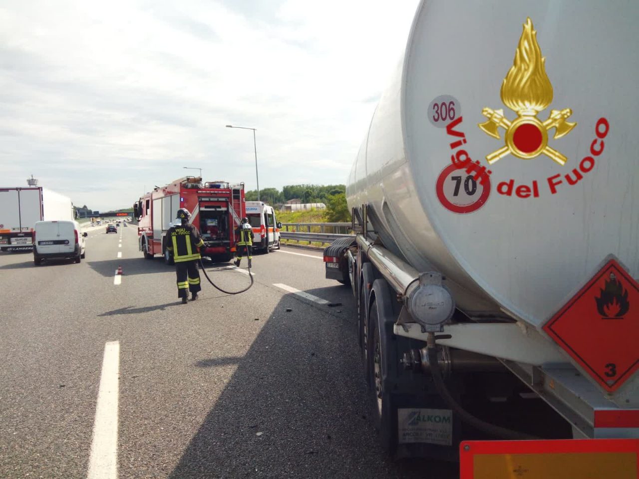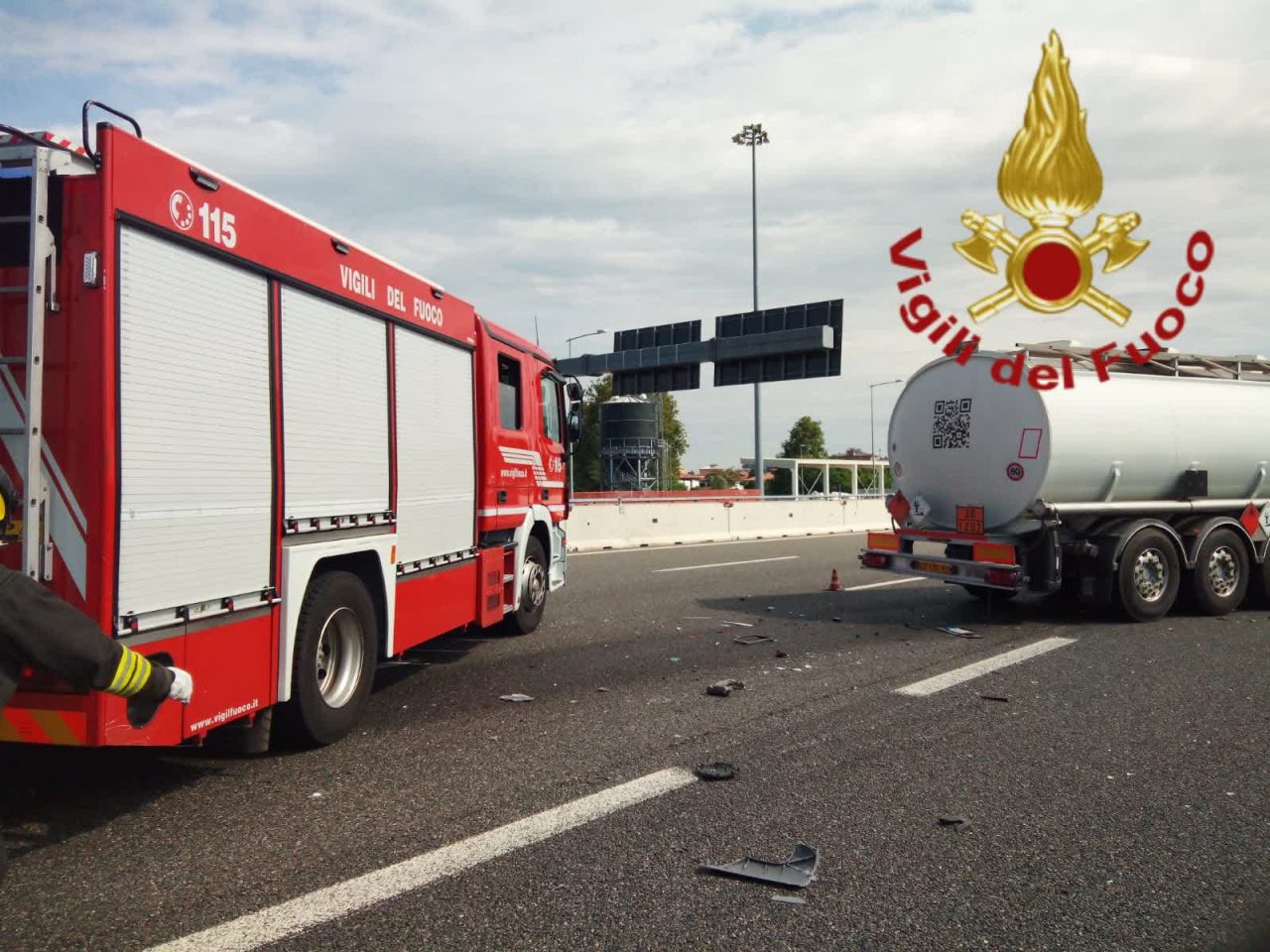Schianto in autostrada tra un’autocisterna e un camion: feriti due uomini.