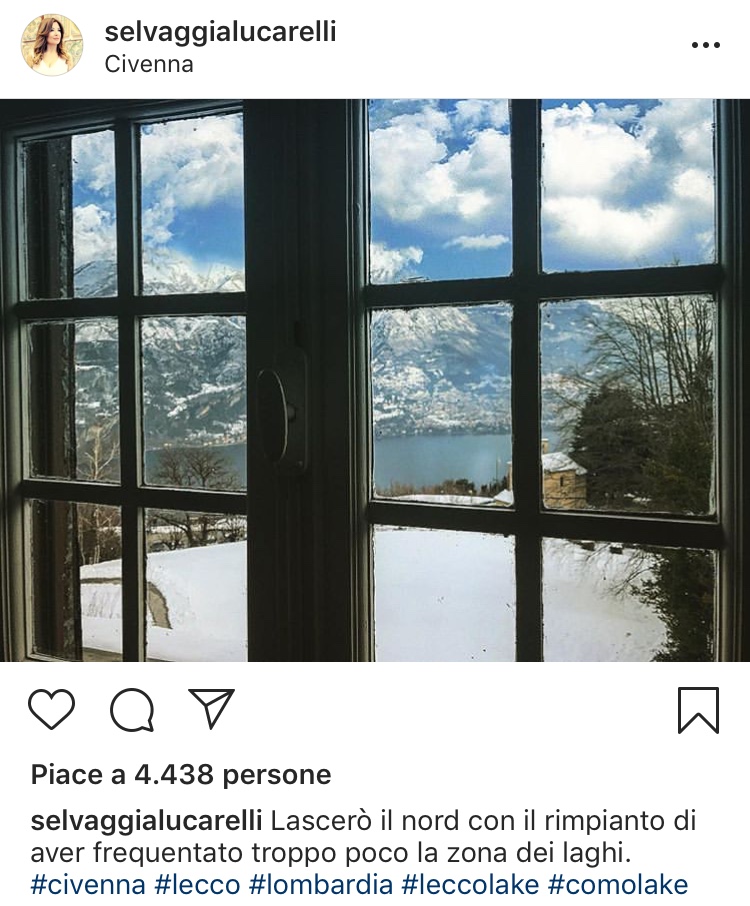 Selvaggia ha scelto di utilizzare #comolake e #leccolake. Non sono mancati i commenti, numerosi a dire il vero, di chi le ha fatto notare che il Lago di Lecco non esiste, esiste piuttosto il ramo di Lecco del Lago di Como. Lei ci ha sorriso, virtualmente, e ha risposto: “Lo so, ma si usa dire così”.