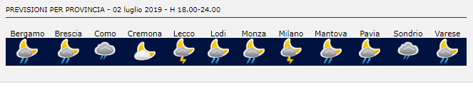 Secondo Arpa Lombardia nelle prossime ore sono attesi rovesci e temporali sui rilievi e localmente sulla pianura, mentre domani, mercoledì 3 luglio 2019, avremo una variabilità maggiore sin dal mattino con possibilità di rovesci e temporali anche intensi nel pomeriggio su buona parte del territorio. Temperature massime in deciso calo.