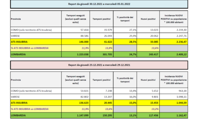 Tasso di incidenza nel Comasco, Ats Insubria: “La piena discesa non ancora evidente”