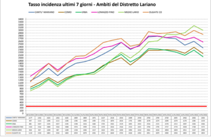 Sui tassi di incidenza, il Comasco sta facendo ancora un po’ fatica: “Sette laghi è in netta discesa, così come l’ambito della Valle Olona, un po’ titubante il distretto lariano dove i dati sono inferiori rispetto agli altri due ma ancora la piena discesa non si è evidenziata”.