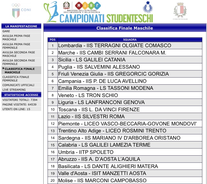 Oggi, venerdì 17 maggio, i ragazzi della scuola superiore olgiatese hanno superato anche l’ultimo ostacolo, vincendo il match che assegnava il titolo. La squadra dell’istituto diretto dalla preside Francesca De Rose ha messo in fila tutti, meritando il primo posto davanti all’istituto Cambi Serrani di Falconara (Marche). Terzo posto per il liceo scientifico Galilei di Catania (Sicilia), quarto l’istituto Salvemini di Alessano (Puglia).
