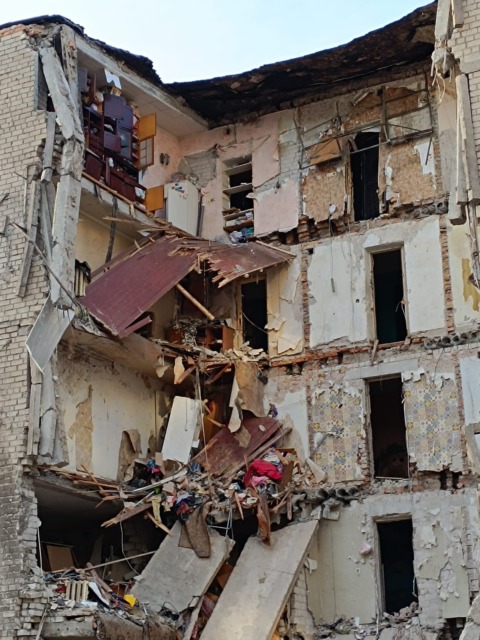 Proprio a Zaporizhzhia, ospiti del vescovo greco cattolico Maksym Ryabukha, la casa in cui sono stati accolti i volontari ha tremato per le reiterate esplosioni che hanno colpito la città. Un terribile attacco notturno  – 8 missili e 20 droni  – ha provocato la morte di due persone e il ferimento di altre 17. Un palazzo sventrato da un missile, ennesimo crimine contro la popolazione.