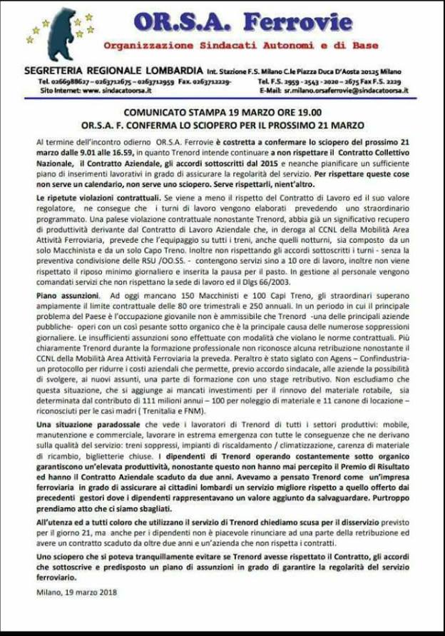 “Che poi vorrei capire a cosa servono gli scioperi fatti con questa modalità. I treni sono sempre pieni zeppi di gente che paga l’abbonamento, sono pochi i pendolari che viaggiano in treno col biglietto giornaliero. Una volta che il pendolare ha pagato, chi ci rimette davvero? Il pendolare o l’azienda? È una questione di matematica elementare che capirebbe chiunque, tanto è che sono anni che fanno scioperi con questa modalità e non hanno mai ottenuto nulla. Sarà un caso?”.