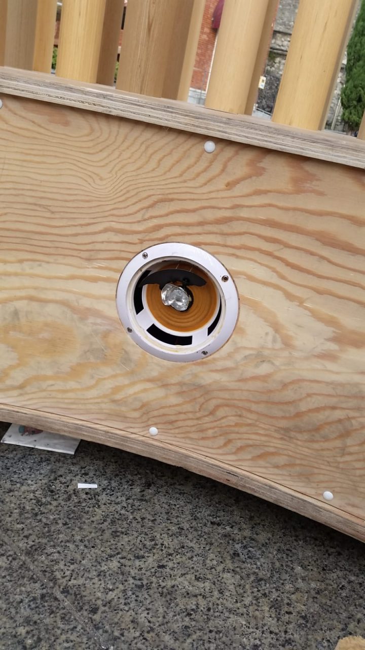 Come dimostrano le foto qui sotto, la Radura, opera d’arte che è sbarcata a Cantù in occasione del Festival del legno, è stata danneggiata. Ad avere la peggio sono state le casse che infondono una dolce e rilassante musica all’interno dell’opera. Un gesto da veri e propri incivili.