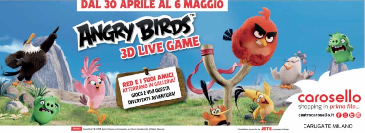 Dal 30 aprile al 6 maggio nella galleria commerciale di Carugate protagonisti i personaggi di Angry Birds, tre spettacolari aree gioco per vivere un’esperienza live a 360°. L’evento è realizzato con la collaborazione dell’agenzia di comunicazione JET’S su licenza esclusiva della ROVIO, proprietaria del marchio.