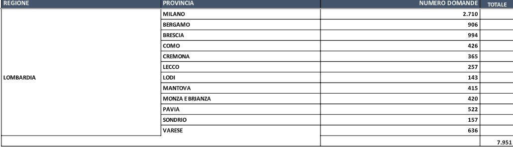 Nella provincia di Como sono state 426 le domande presentate.