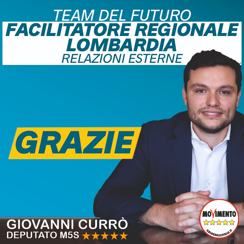In Lombardia l’onorevole Giovanni Currò ha ottenuto la posizione di Facilitatore responsabile per le Relazioni Esterne: “Con orgoglio sarò parte attiva dell’organizzazione nazionale del Movimento 5 Stelle, e mi occuperò delle Relazioni Esterne in Lombardia. Programmeremo tutti insieme i prossimi 10 anni per il rinnovamento del nostro sogno. Un impegno arduo da portare avanti, ma che è già iniziato con esempi di buone pratiche come Spazio 5 Stelle Como”.