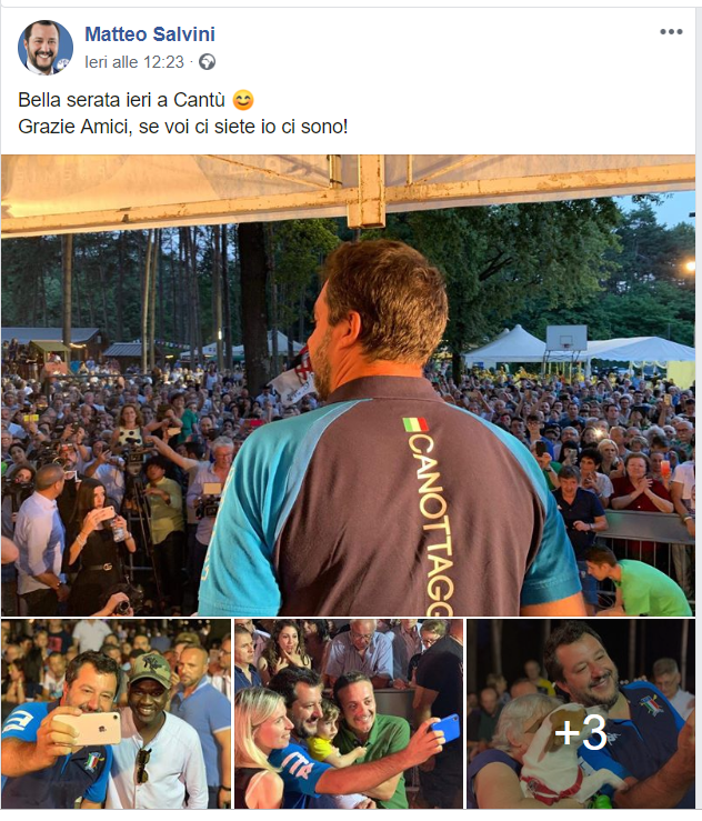 Il vicepremier ieri, direttamente sul suo attivissimo profilo Facebook ha voluto ringraziare tutti i presenti. “Bella serata a Cantù. Grazie amici, se voi ci siete io ci sono!”.