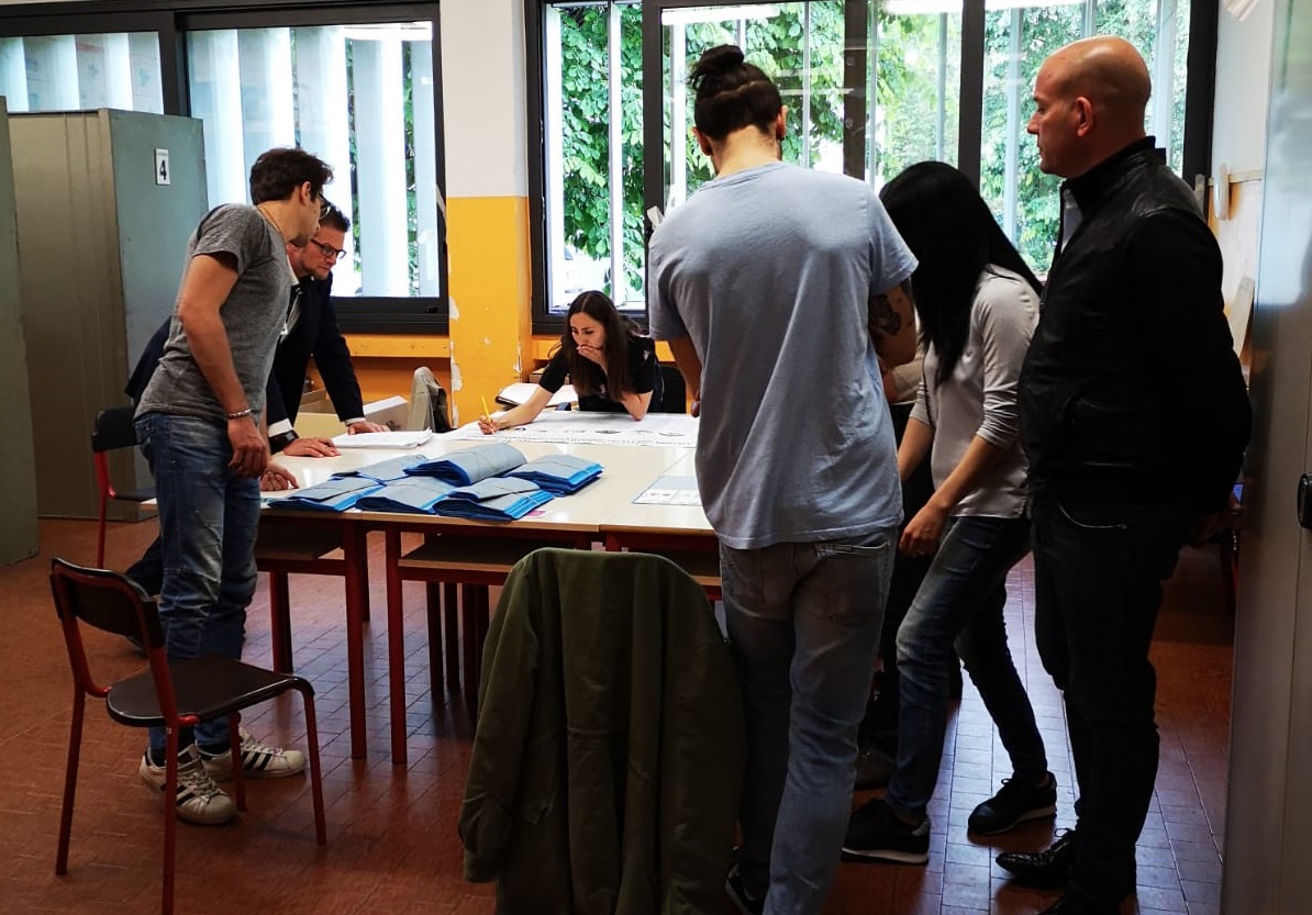 Ore 15.30 – Un’immagine dai seggi di via dei Vivai dove tra gli altri sono presenti il candidato sindaco del Movimento 5 Stelle Carmen Colomo, Andrea Ballabio (Forza Italia), Claudio Nogara (Fratelli d’Italia) e Giuseppe Redaelli (Pd).