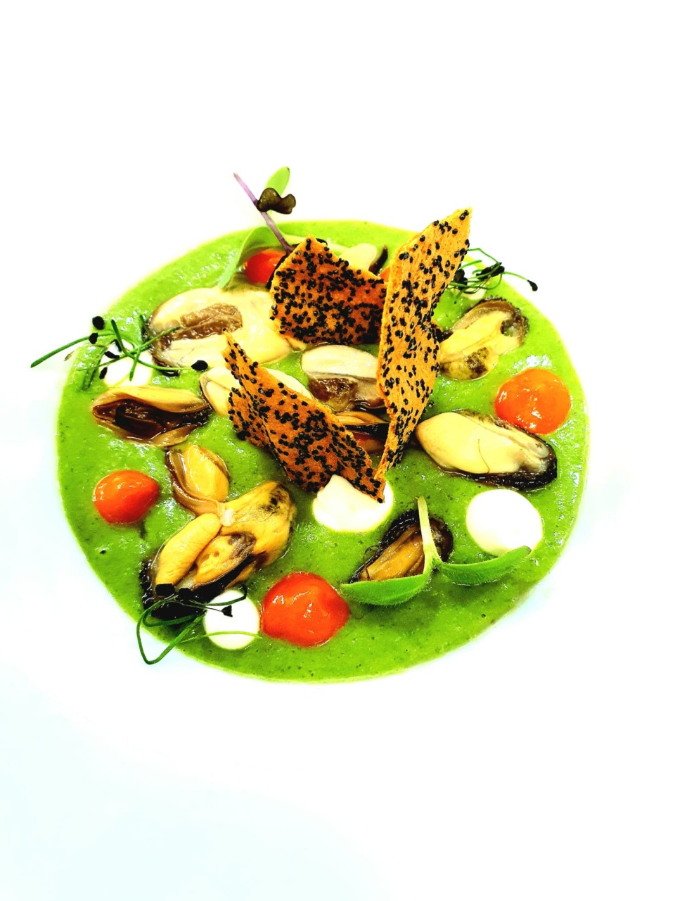 La ricetta del ristorante: Fluid Salad con cozze, vongole e due creme