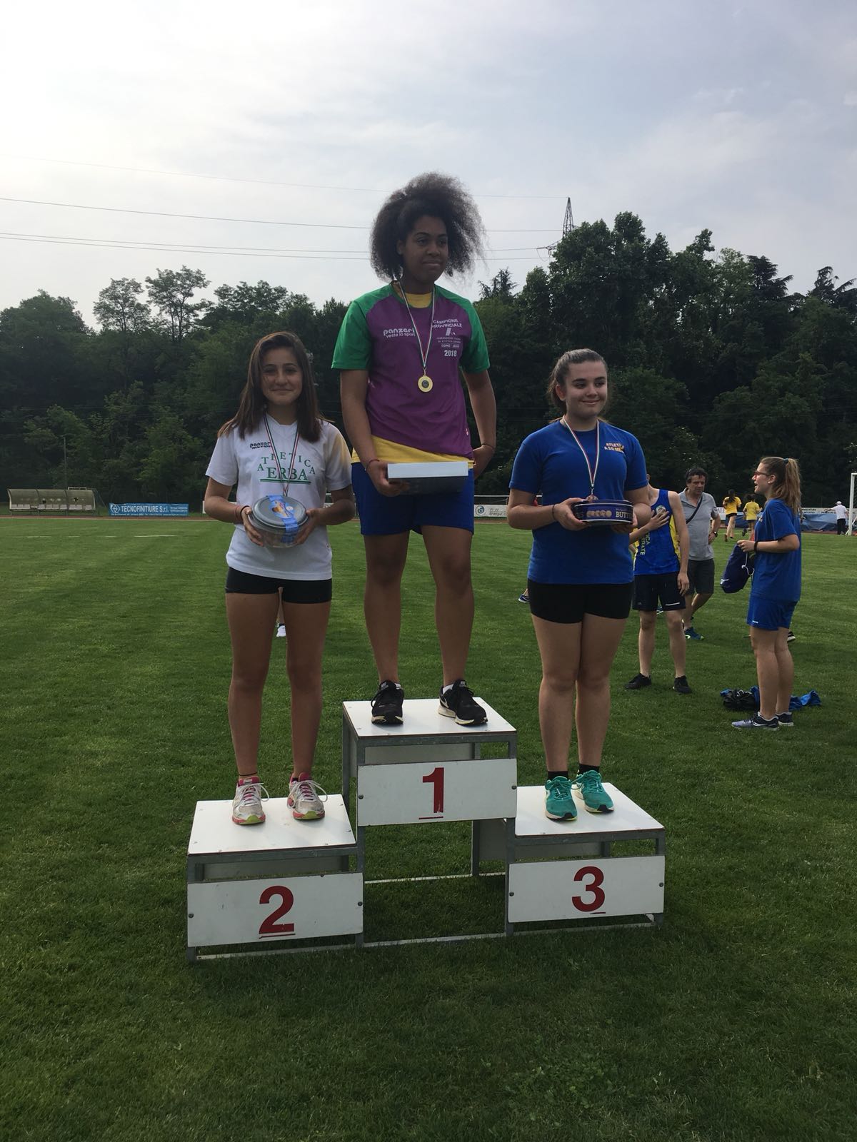 L’Atletica Erba ha portato a casa ben 4 titoli e un argento. Hanno infatti brillato gli atleti allenati da Giancarlo Ciceri: Ilaria Oricchio (cadetta), con due titoli individuali nel salto in lungo con 4,81m e negli 80hs ostacoli con 12″68 (PB e nuovo record societario). Bene anche Sara Pancera nel triplo cadette con 10,36m (PB e migliora il record societario), e la sorella Anna Pancera con 1,37m nel salto in alto ragazze. Medaglia d’argento con Alessandra Murruzzu nel lancio del martello 3kg cadette all’esordio con 18,62m. Vicini al podio nel getto del peso e nel lancio del disco cadetti Leonardo Molteni (8,50m nel peso e 21,61m nel disco) e la stessa Alessandra con 17,55m nel disco da 1kg (categoria cadette). Si migliora anche Alessandro Nava (cat. ragazzi) nei 60m piani, giunto ad un passo dalla finale.