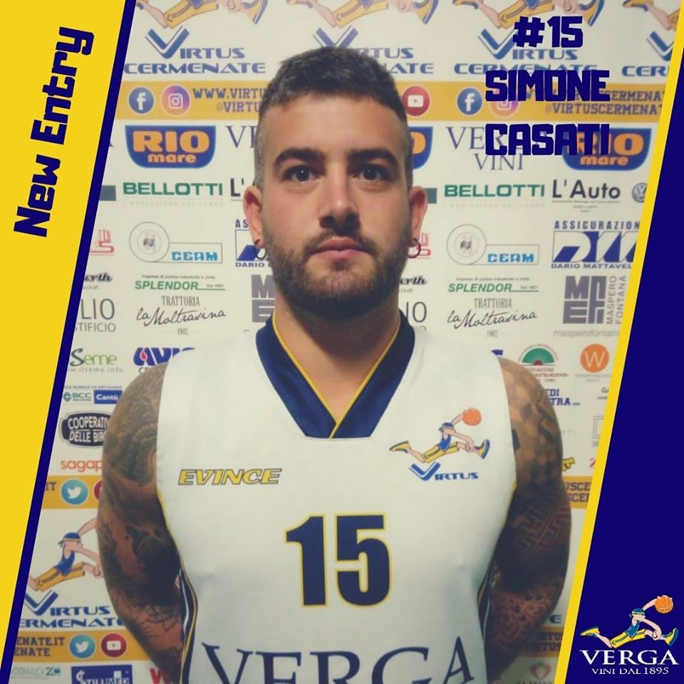 Colpo di mercato nel girone Ovest di basket C Gold. In casa della Virtus Cermenate infatti a due giorni dal debutto in campionato è stato messo a segno un nuovo colpo: il tesseramento di Simone Casati a completare il roster gialloblù a disposizione di coach Max Mazzali. La guardia classe 1991 di Desio era ferma da oltre un anno per un infortunio al ginocchio e, dopo oltre un mese di sedute di fisioterapia e allenamenti specifici, ha finalmente ricevuto il via libera dai medici per riprendere la normale attività agonistica. Casati, uscito dalle giovanili di Desio, vanta una buona carriera passata sui campi di Serie B e C con le maglie di Desio, Sangiorgese, Lecco e Olginate, oltre a due esperienze in Lega Due a completare i roster di Capo D’Orlando e Ferrara. Per la Virtus si tratta di un innesto importante che va rinforzare ulteriormente la rosa.