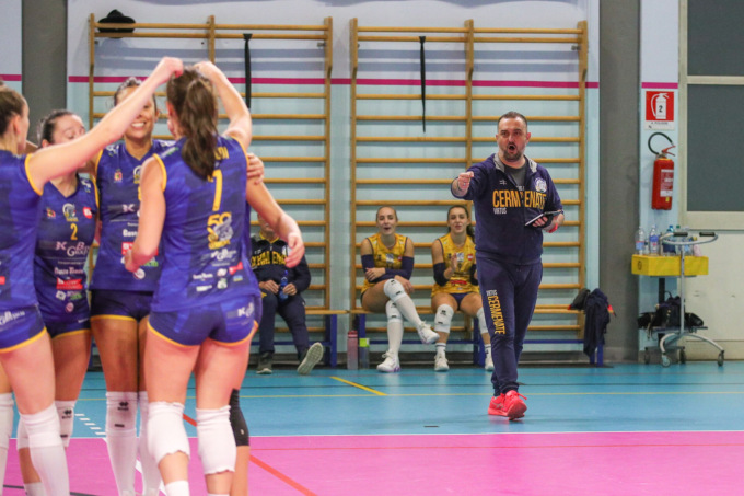 Buon avvio di primo set per Cermenate (4-2, 9-3). San Giorgio non reagisce (12-6, 15-7, 20-11) e per la Bianchi Group è semplice chiudere il parziale 25-16. Il secondo set è la copia del precedente con la formazione di coach Rutigliano che parte avanti (4-2, 8-5, 13-8), amministra il vantaggio (19-10) e chiude 25-14 il parziale. Più combattuto il terzo set. Dopo un 3-0 iniziale per le virtussine, sono le ospiti a portarsi avanti (6-8, 7-10). Cermenate non demorde ed impatta sul 13-13. San Giorgio si blocca (15-13, 14-19), ma nel finale riesce ad accorciare (22-19, 22-24), ma è la Bianchi Group a chiudere l’ultimo punto vincendo 25-22 il parziale e l’incontro 3-0.