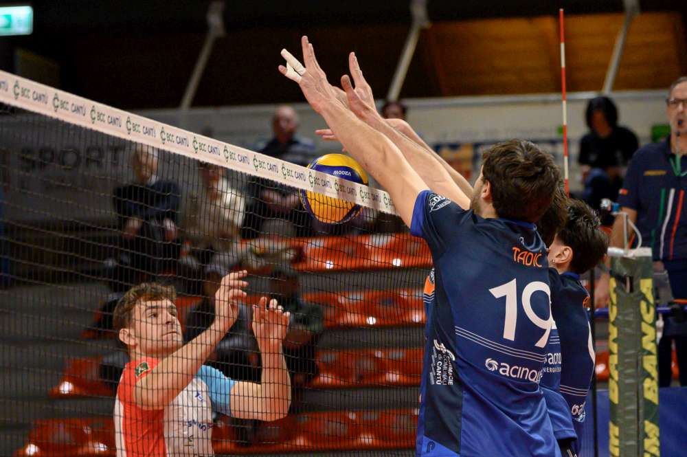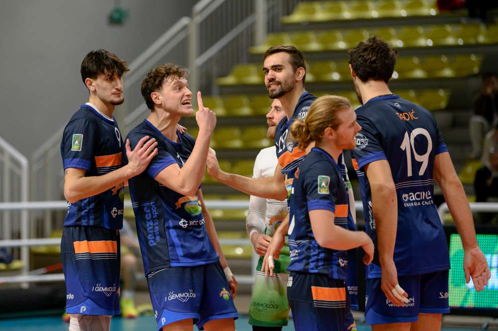 Finisce 1-3 per i siciliani, che risultano più incisivi sia a muro che in battuta rispetto ai lombardi. Coach Alessio Zingoni schiera Luca Martinelli al palleggio, Gaetano Penna opposto, Andrea Bacco e Nikolay Ivanov schiacciatori, Nicola Candeli e Gabriele Maletto centrali, e Luca Butti libero. Coach Paolo Montagnani risponde con Francesco Cottarelli in cabina di regia, Arinze Kelvin Nwachukwu opposto, Luka Basic e Leonel Marshall in banda, Nicolò Volpe e Cosimo Balestra al centro, e Peppino Carbone e Leonardo Caletti che si alternano come libero.