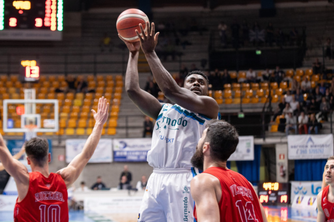 iniziale, in favore di un’Acqua S.Bernardo che trova per la prima volta due possessi di vantaggio grazie a una tripla di uno Young già in doppia cifra dopo 8’. I biancoblù ritoccano ancora il vantaggio con il canestro con fallo di Nwohuocha, prima della tripla di Filloy che chiude il primo quarto sul 27-22.