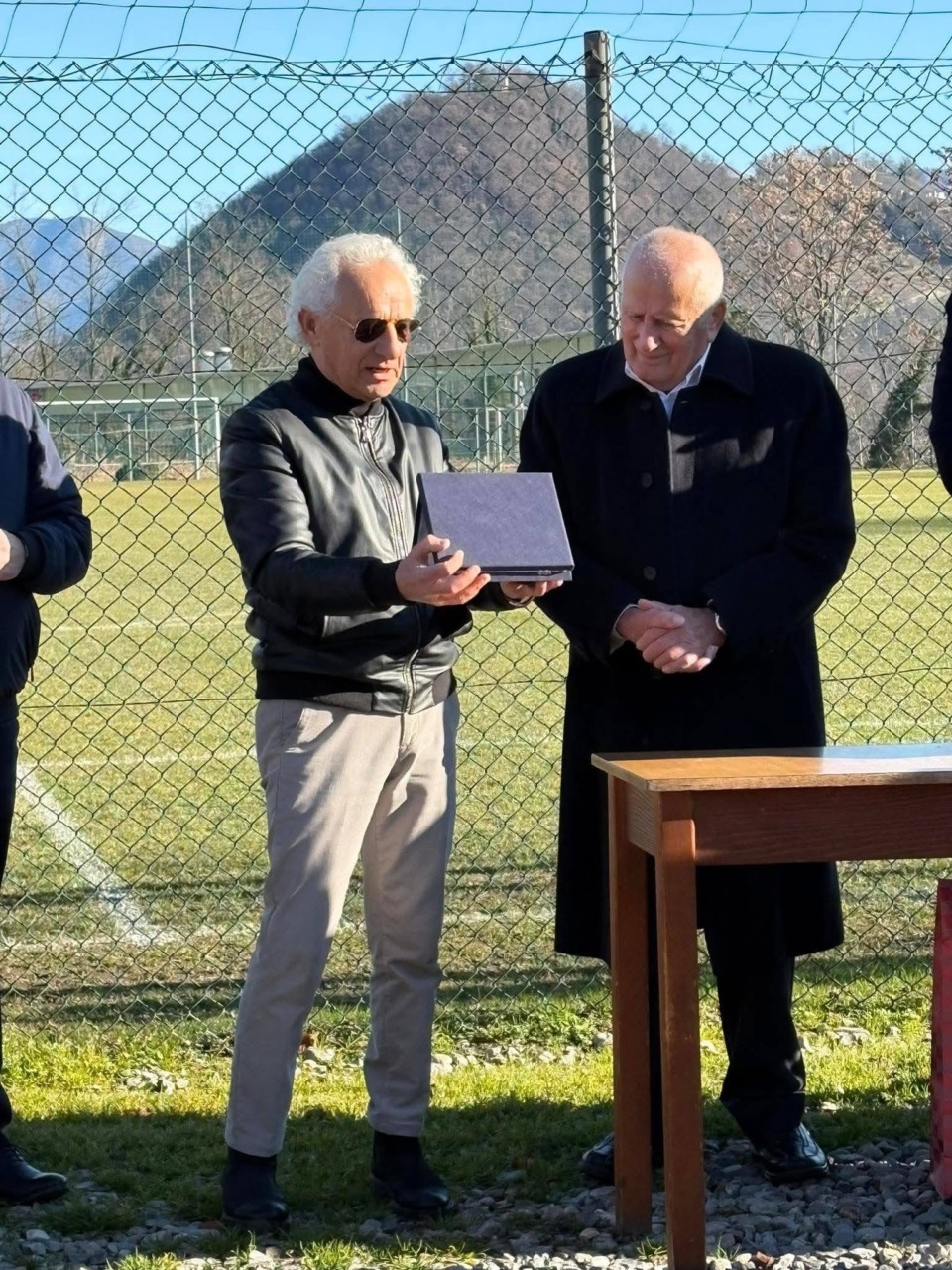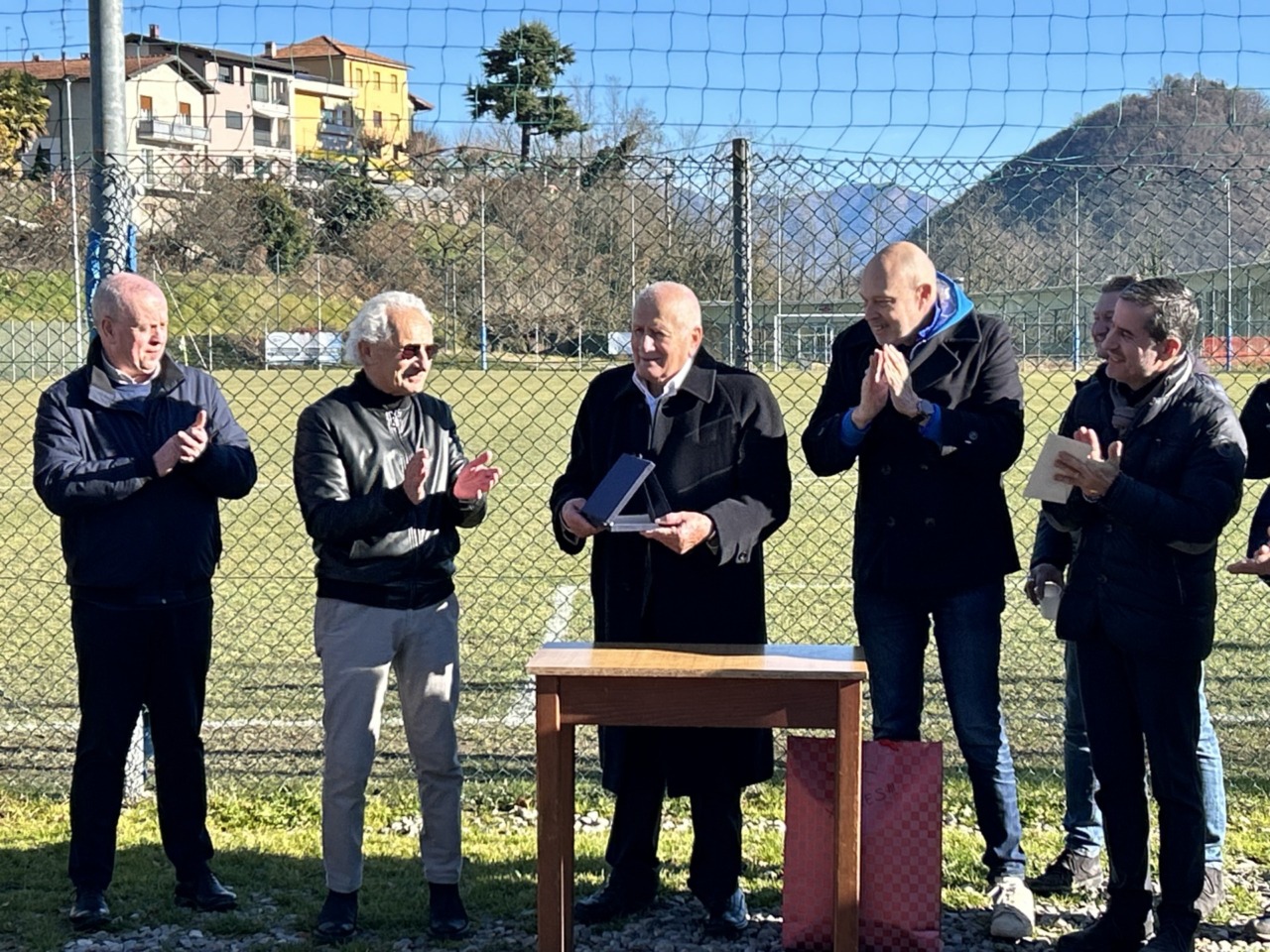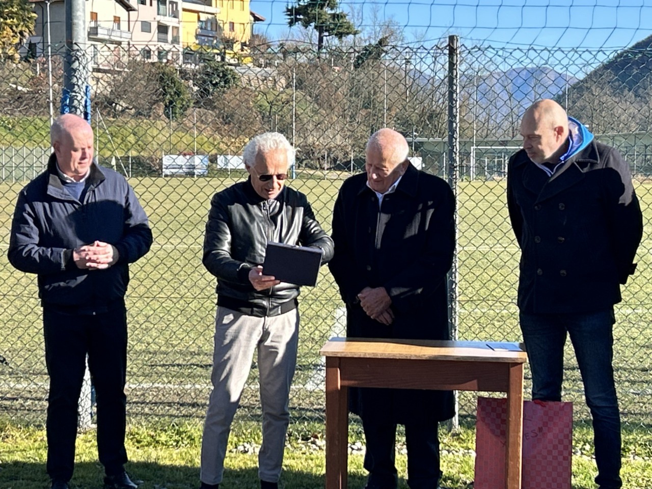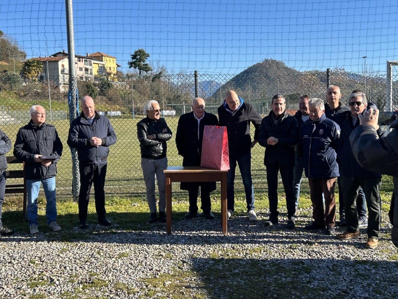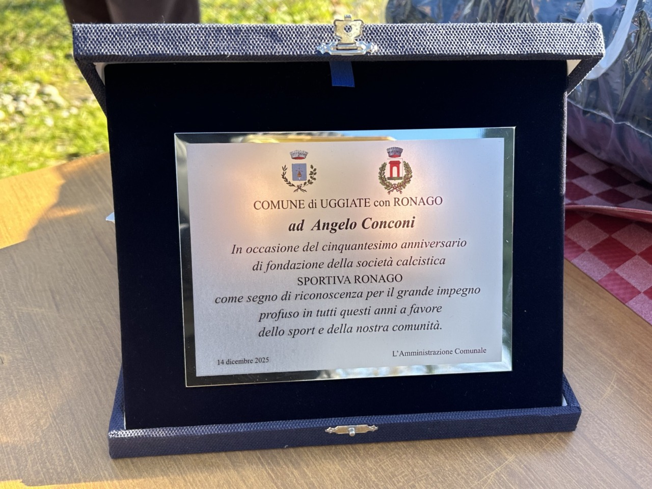 Nella mattinata di ieri, domenica 14 dicembre, un momento speciale al centro sportivo di via Asilo. Storici giocatori e dirigenti del Gs Ronago, insieme agli attuali membri e volontari della For Soccer, a don Sandro Vanoli e ai rappresentanti dell’Amministrazione comunale, hanno reso omaggio ad Angelo Conconi, storico presidente della società del paese. Il sindaco Ermes Tettamanti, affiancato dalla Giunta comunale, ha consegnato a Conconi una targa celebrativa “come segno di riconoscenza per il grande impegno profuso in tutti questi anni a favore dello sport e della nostra comunità”, sottolineando il valore umano e sportivo di una figura che ha segnato profondamente la storia del calcio locale. A seguire, il presidente della For Soccer, Enrico Levrini, insieme al Consiglio direttivo, ha conferito a Conconi il titolo di presidente onorario della società, omaggiandolo anche con un giaccone ufficiale: un gesto simbolico per ringraziarlo della passione, della dedizione e dell’esempio lasciato in eredità alle nuove generazioni.