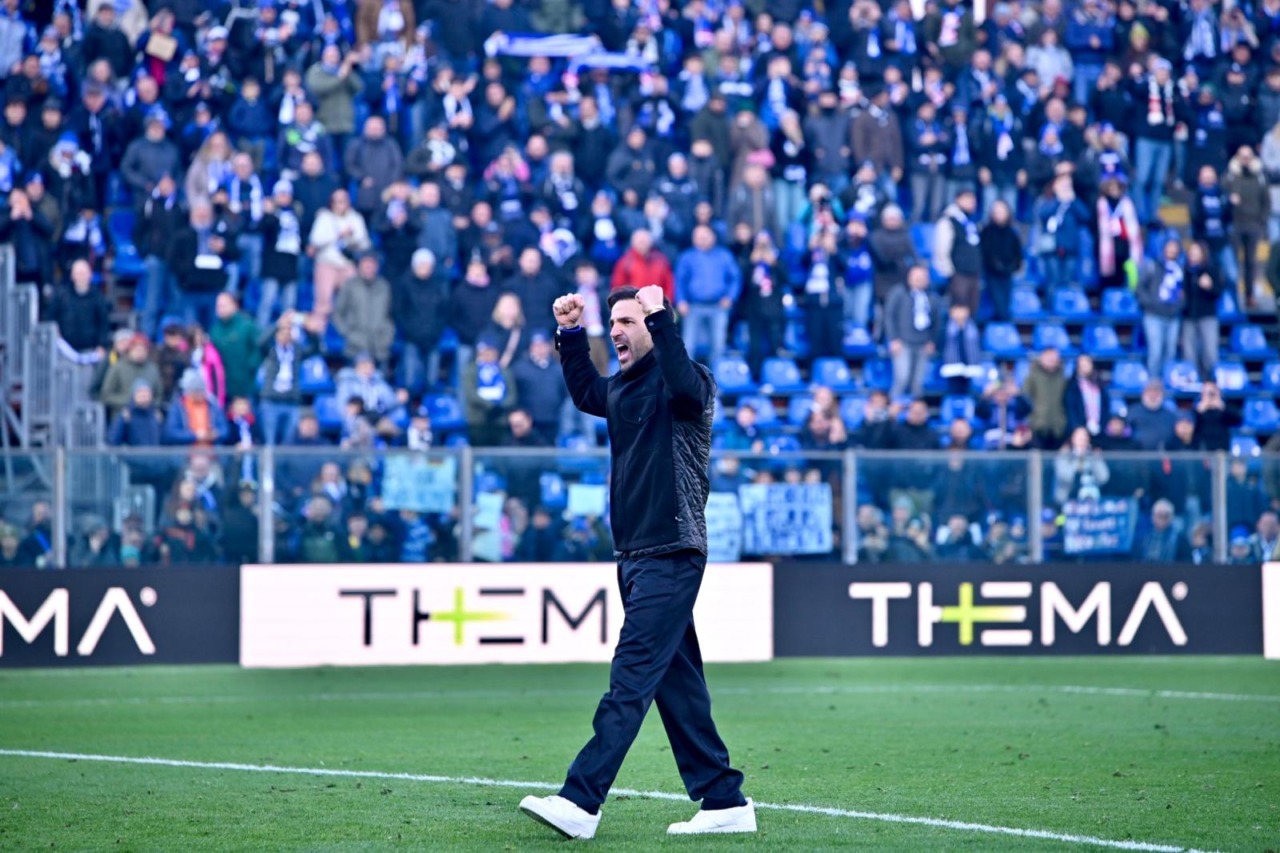 La carica di Fabregas sotto la curva dopo la vittoria (foto di Giancarlo Favaro)