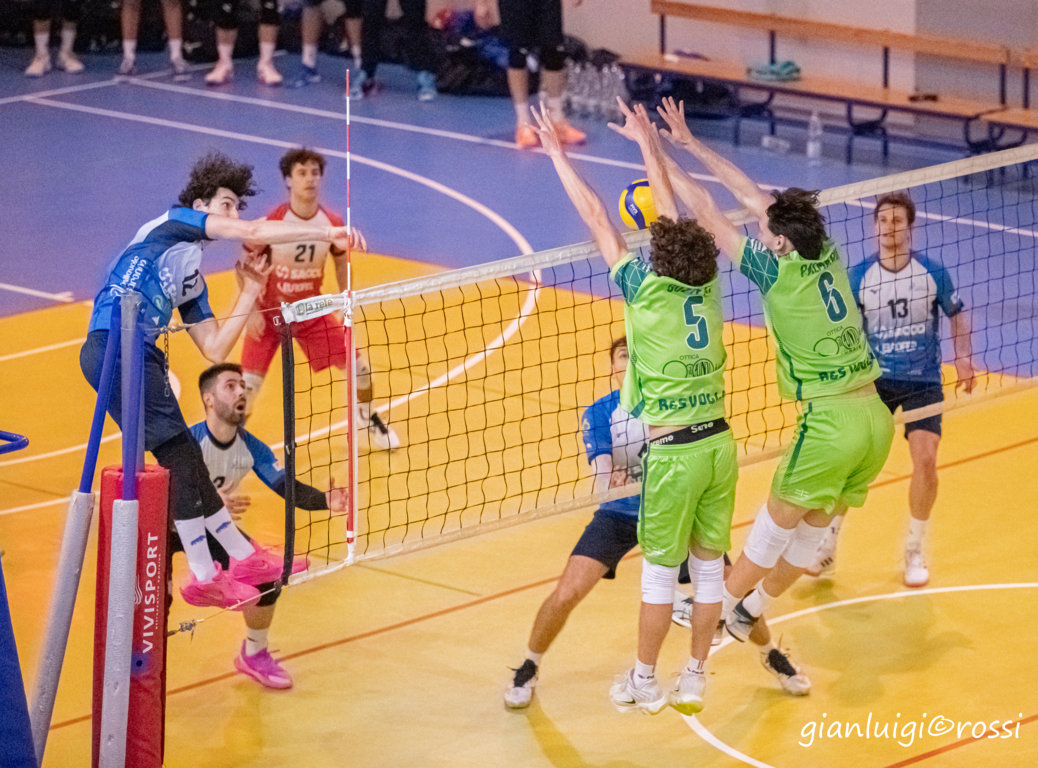 Nel primo set Albisola sembra smarrita e Mozzate mette subito il piede sul gas portandosi 6-1 con 3 punti di Martignoni, doppietta di Ferrario e ace di Guizzardi per il 13-5 col Res che vola e Marini firma il setball 24-13, Albissola lo annulla, ma il muro di Palmarin a chiudere il set 25-14. Il secondo set è più equilibrato, Mozzate abbassa la guardia comincia a sbagliare qualcosa di più al servizio e Albisola che risale e prende fiducia. Sul 12 pari qualche svista arbitrale rischia di innervosire la partita, ma si prosegue punto a punto fino al 20-18 per Mozzate con un muro di Marini e poi è ancora palla su palla fino a quando Albisola non scava un break di 2 punti e va a chiudere 23-25. Il Res accusa il colpo e parte sotto 6-10 nel terzo coi liguri che allungano 10-14. Ferrario dei 9 metri arma il braccio e Martignoni in attacco trova la tripletta del pareggio a 14. Nuovo break di Albisola 15-17 e nuovo pareggio a 17 con Palmarin. Da qui parte una lotta punto a punto con un nuovo break sempre dei liguri per il 20-22; dentro Caprotti per Marini, ma sono ancora una volta Ferrario e Martignoni a riprendere il pareggio a 22. Albisola a muro si prende il setball 22-24, Mozzate non trema e un muro millimetrico di Palmarin vale il nuovo a pareggio a 24. Nel rush finale il Res si prende il setball 26-25, e poi una difesa di Martignoni e un attacco nei 3 metri di Guzzetti valgono la vittoria del parziale 27-25. Mozzate è carico e nel quarto è subito 3-1 con gli attacchi di Ferrario, Guizzardi si inventa schiacciatore dalla seconda linea per il 4-1, col monologo comasco che prosegue fino al 10-4 quando Ferrario e Guzzetti in attacco mettono il turbo ai padroni di casa ed è 16 -11 e poi 20-16 Quando Cimmino rileva Guzzetti per il servizio, dai 9 metri il mozzatese trova il 21-16 e Guizzardi lo chiama in pipe per il 22-16. Ancora un muro di Palmarin per il 23-16 con Ferrario che chiude il set 25-19 da seconda linea.