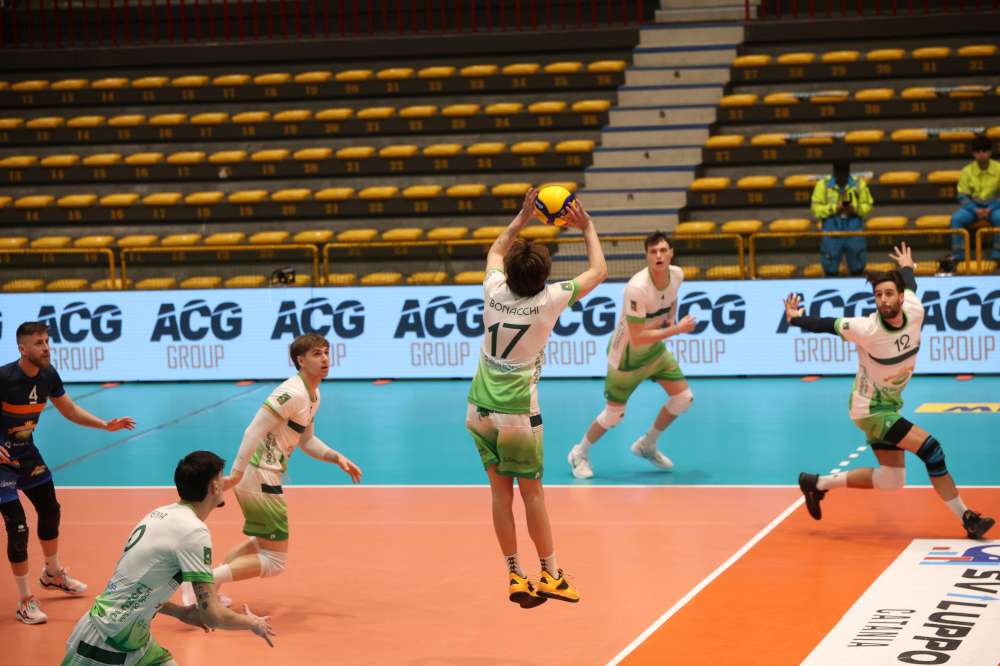 Coach Alessio Zingoni schiera Federico Bonacchi al palleggio, Gaetano Penna opposto, Matteo Meschiari e Gabriele Pertoldi schiacciatori, Nicola Candeli e Gabriele Maletto centrali, e Luca Butti libero. Coach Paolo Montagnani risponde con Francesco Cottarelli in cabina di regia,Arinze Kelvin Nwachukwu opposto, Luka Basic e Jan Feri in banda, Nicolò Volpe e Cosimo Balestra al centro, e Peppino Carbone e Leonardo Caletti si alternano come libero