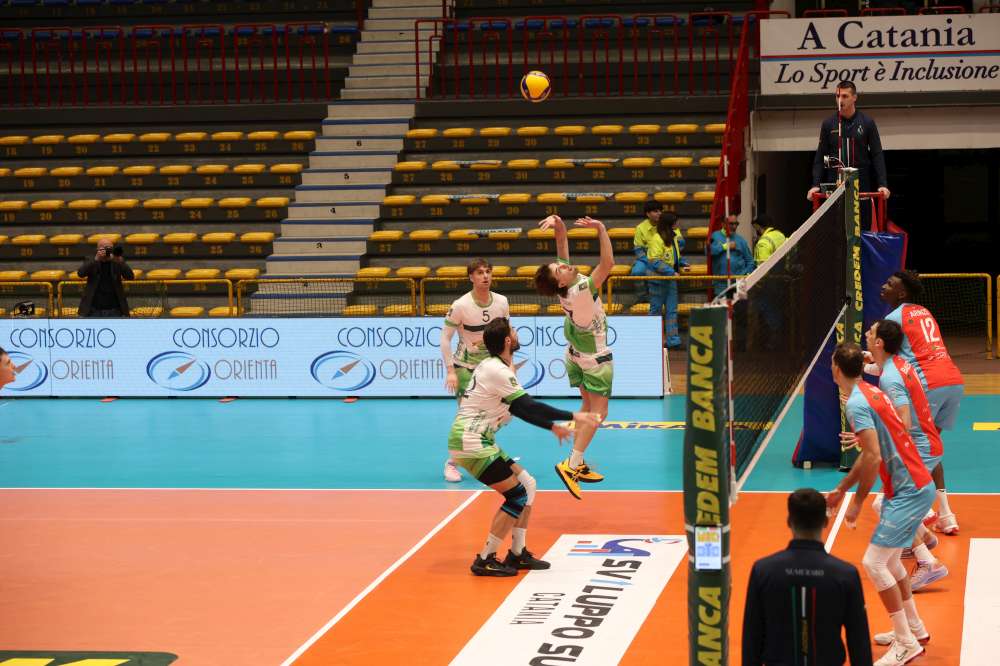 Una Campi Reali Cantù estremamente combattiva si impone per 3-2 al PalaCatania, lasciando ai padroni di casa solo un punto. Sugli scudi il trio di palla alta canturino composto da Penna, Meschiari e Pertoldi, autori rispettivamente di 18, 17 e 15 punti. Bene anche Candeli, con 11 palloni a terra dei quali 3 muri.