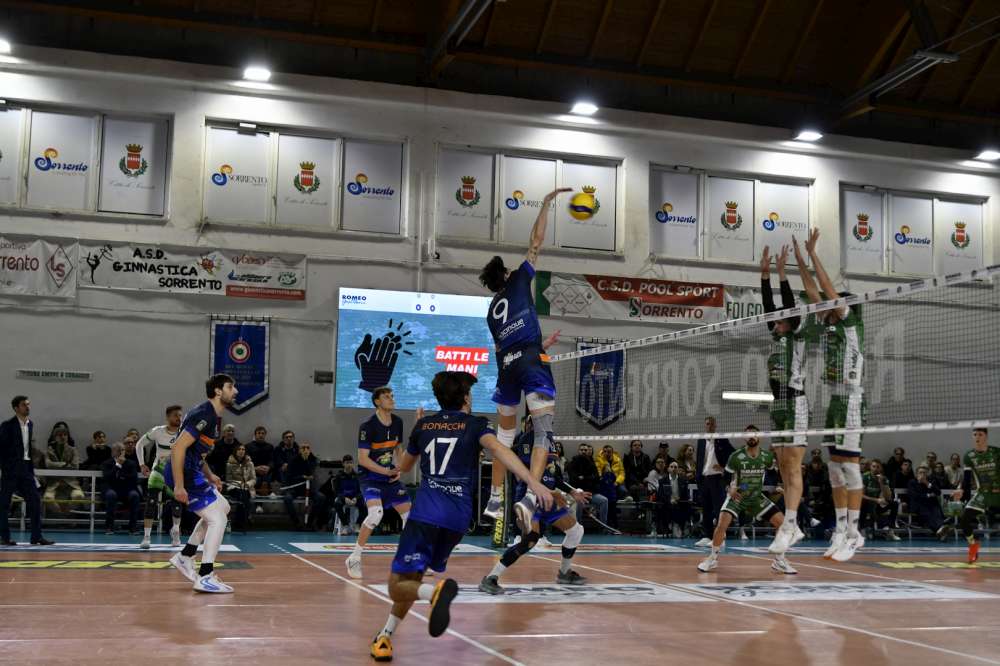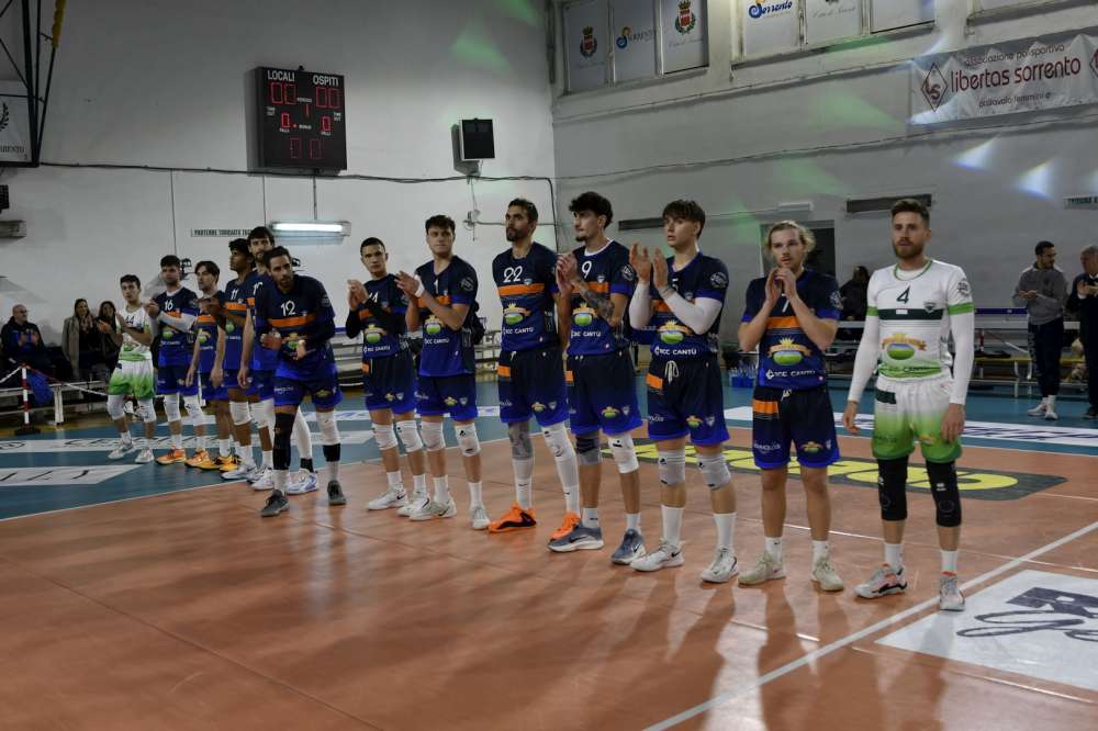 Tre set finiti con il minimo scarto, poi il crollo. Si può riassumere così il match appena concluso tra Romeo Sorrento e Campi Reali Cantù presso il PalAtigliana di Sorrento. Primi due parziali finiti ai vantaggi dopo un equilibrio durato fin dai primi scambi, il terzo con i canturini a scappare per poi essere raggiunti nel finale, e il crollo degli ospiti nel quarto.