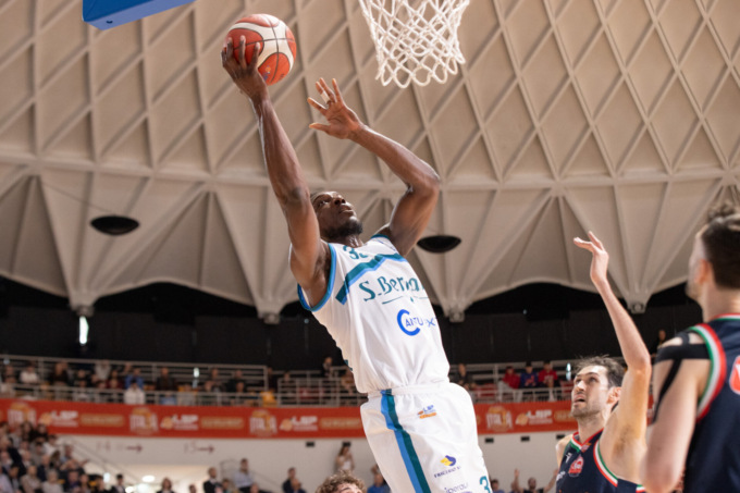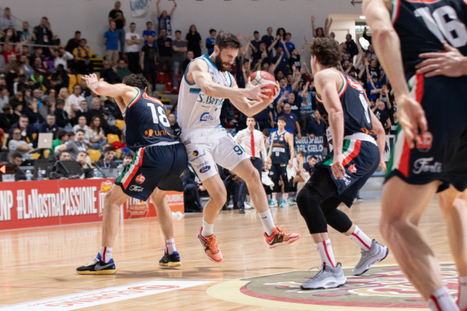 “È un peccato – ha esordito coach Devis Cagnardi – Ci dispiace per la società e per i tanti tifosi che ci hanno seguito. È stata una partita tostissima, contro una squadra forte a cui vanno i nostri complimenti. Abbiamo approcciato con tensione, prima di questa partita ci portavamo dietro un peso dopo le ultime settimane non semplici. Siamo stati poi bravi a fare una partita fisica, difensiva e anche non esattamente nelle nostre corde, ma l’abbiamo tenuta bene. Offensivamente invece è stata una partita difficile, lo dice il punteggio, e con tanti break affidati a individualità. Abbiamo vinto gli ultimi tre quarti, ma è un dato che conta poco e sta solo a significare che la squadra era dentro la partita. Poi, come spesso accade, queste gare si decidono sui singoli possessi e abbiamo avuto diverse occasioni offensive con dei tiri aperti, ma non ne faccio una colpa ai ragazzi se non siamo riusciti a fare canestro nonostante avessimo costruito dei buoni tiri. Difensivamente gli abbiamo lasciato qualche rimbalzo in attacco di troppo, speso un paio di falli male in bonus. Negli ultimi due minuti sarebbe bastato un canestro per cambiare il risultato della partita, ma così non è stato. Ci portiamo a casa, oltre alla delusione per la sconfitta, anche la consapevolezza di essere tornati un gruppo solido e di aver combattuto contro una squadra di alto livello. Adesso abbiamo la volata finale e queste ultime 5 partite per affrontare i play-off al meglio, abbiamo diverse cose da sistemare come tutti ma dobbiamo portare con noi l’idea di essere competitivi e di esserlo per provare a vincere.”