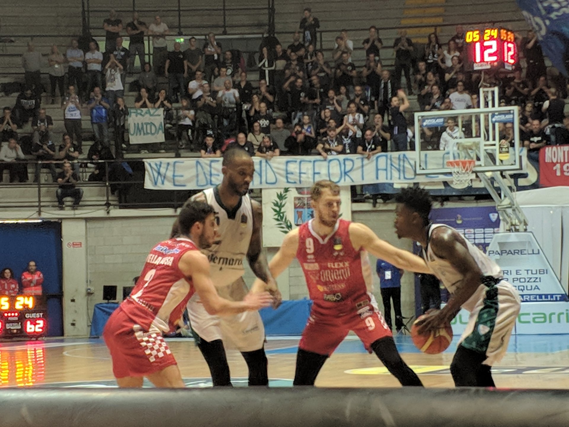 Secondo fallo di Tassone e Peak in lunetta. 42 a 33 a due minuti dalla fine della frazione.