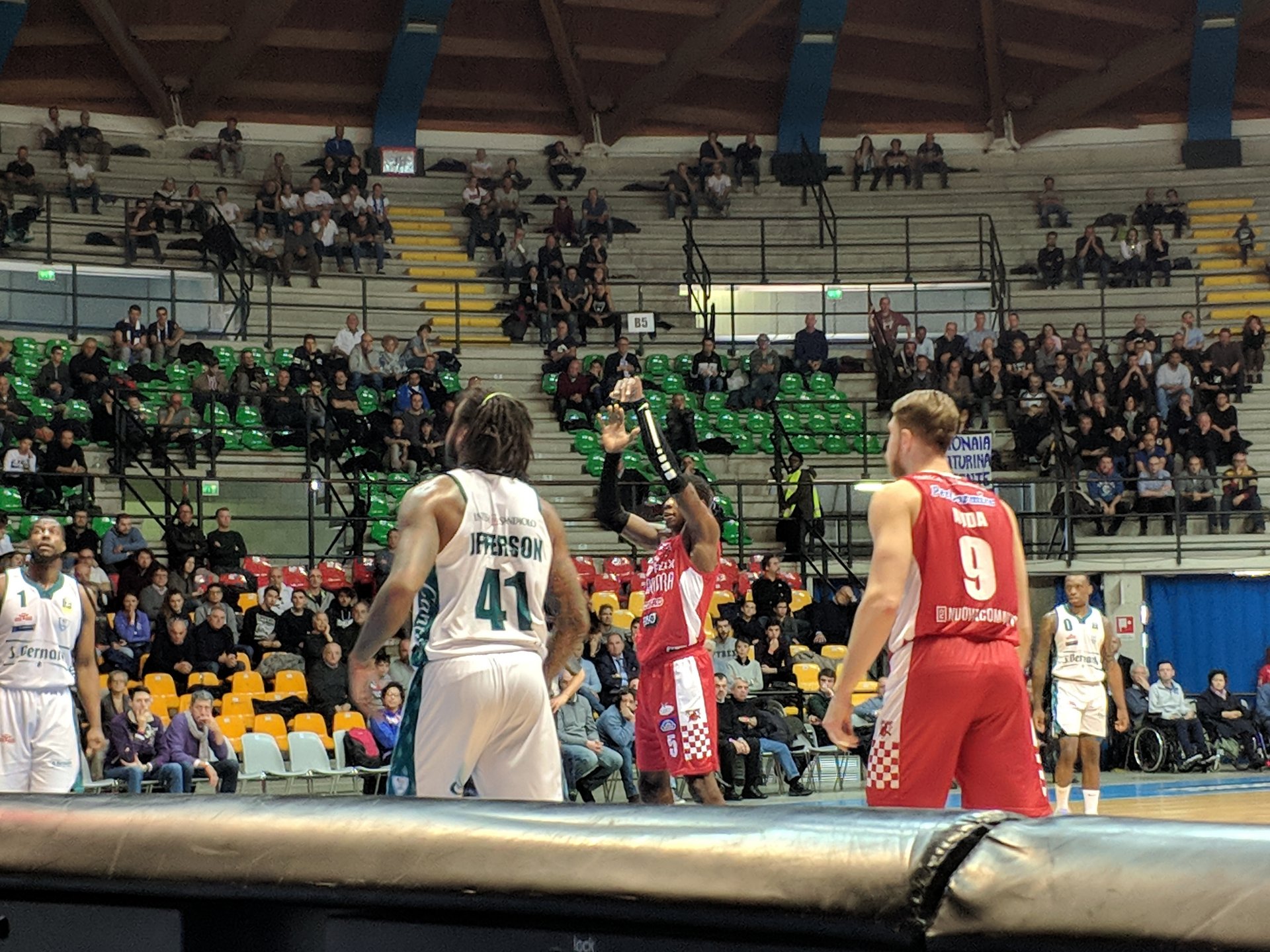 Ancora Jefferson. Poi Tassone in difesa fa il quarto fallo e lascia il campo. Al suo posto Mitchell, che è già a quota quattro falli.