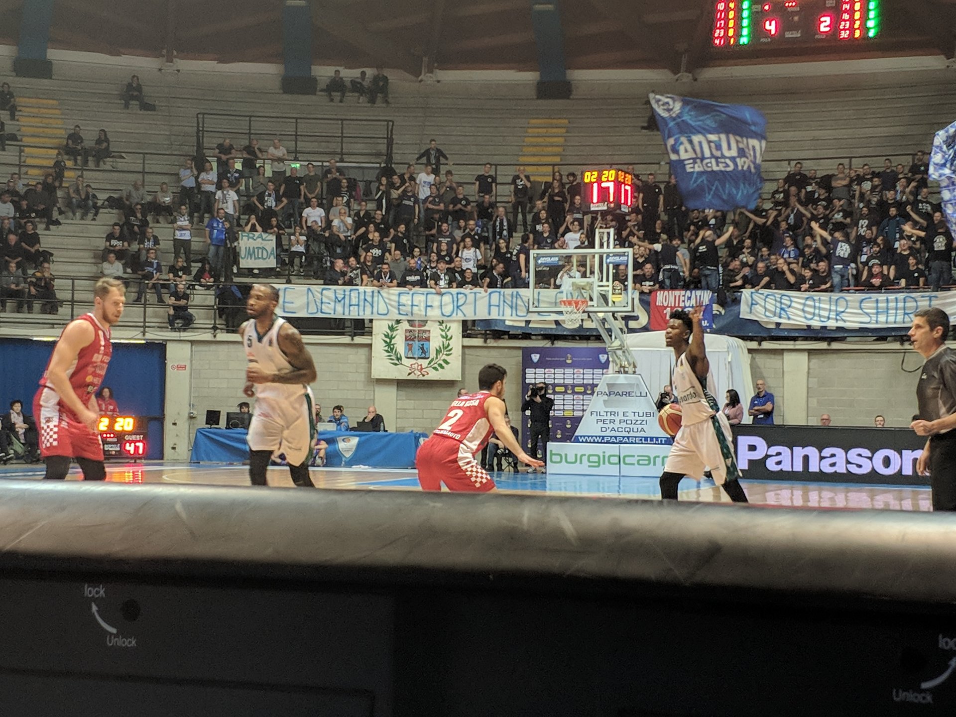 Match di fondamentale importanza quello di oggi dell’Acqua S.Bernardo Cantù contro Oriora Pistoia, che ha gli stessi punti in classifica. Per gli uomini di coach Pashutin è fondamentale non perdere e gli Eagles hanno esposto al PalaDesio due striscioni con i quali chiedono ai giocatori il massimo impegno e attaccamento alla maglia.