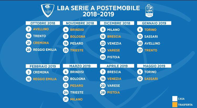 La Pallacanestro Cantù allenata da coach Evgeny Pashutin debutterà nel prossimo campionato di Serie A, stagione 2018-‘19, in trasferta contro la Scandone Avellino domenica 7 ottobre.