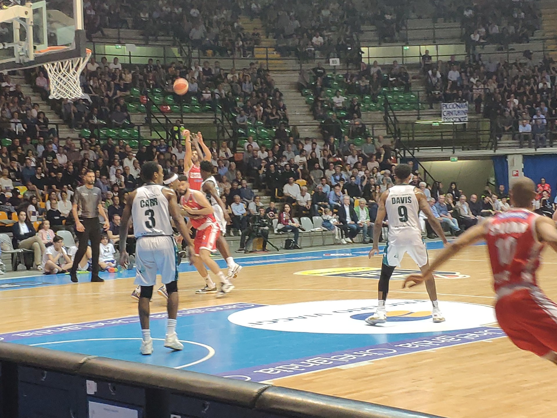 Brutta fase di gioco con errori a ripetizione da entrambe le parti. Poi segna Cantù e Caja chiama time out sul 46 a 45.