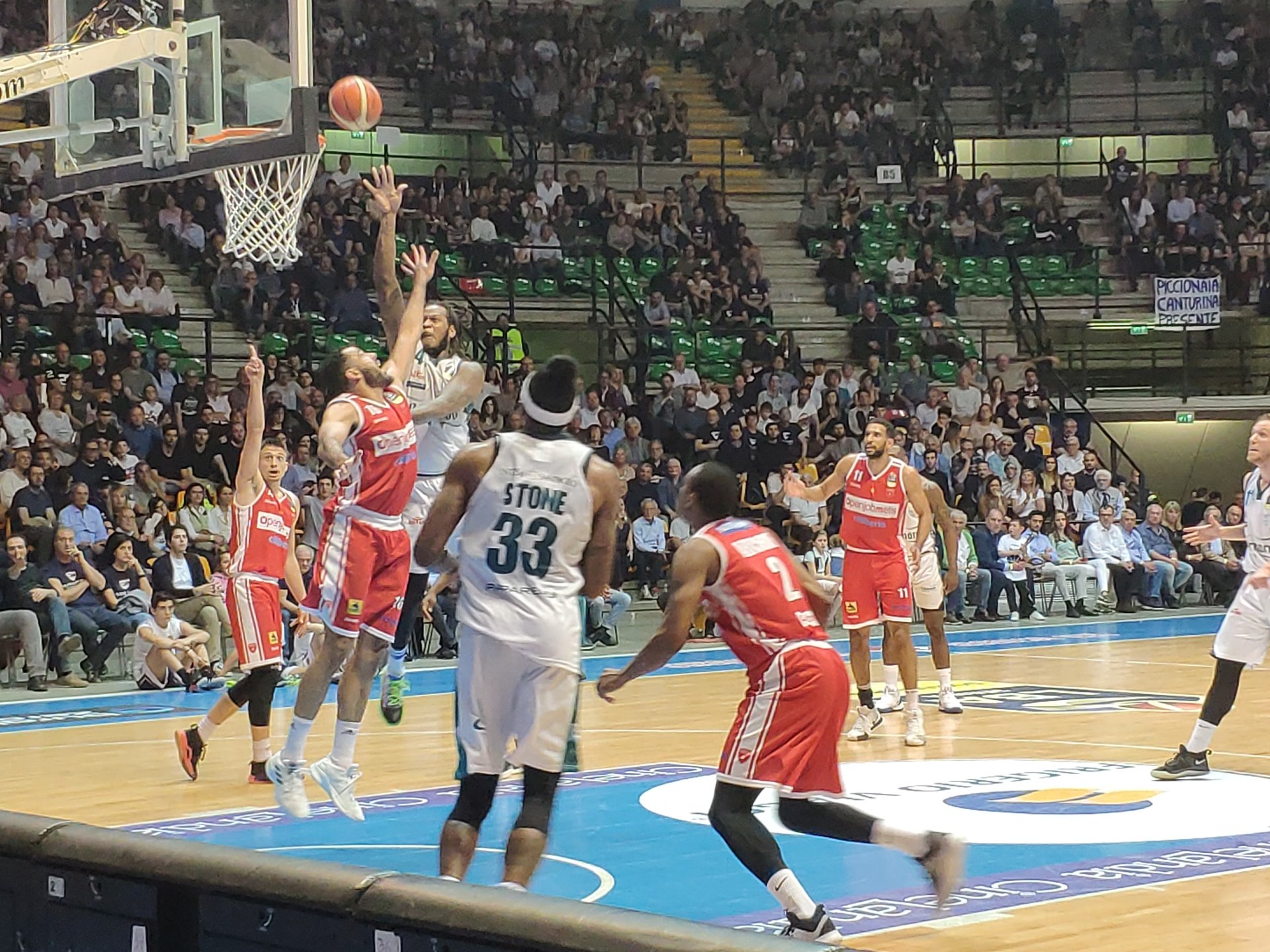 Stone da sotto e ottimo rimbalzo di La Torre in difesa, che innesca Gaines in contropiede. Fallo antisportivo e Gaines in lunetta fa due su due. Palla ancora ai padroni di casa che non riescono a capitalizzare. 53 a 48 a 3’14” dalla fine del quarto.