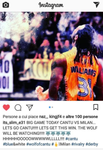 Ad attendere la gara, oltre ai tifosi delle due squadre, ci sono anche spettatori illustri come Eric Williams. L’ex giocatore canturino su Instagram ha scritto: “Oggi un grande match tra Cantù e Milano. Andiamo Cantù. Prendiamoci questa vittoria. The Wolf vi guarderà”.