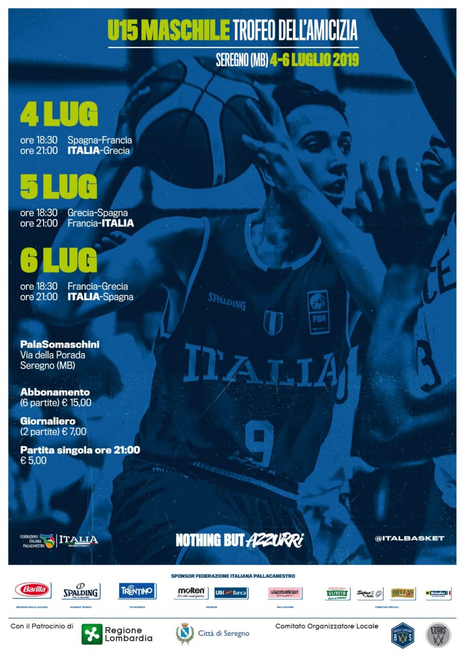 Arrivano belle notizie tinte d’azzurro per il Progetto Giovani Cantù. Ieri presso il palazzo Landriani di Seregno è stato presentato il “Trofeo dell’amicizia 2019” il torneo che vedrà in campo le nazionali under15 (annata 2004) di Italia, Spagna, Francia e Grecia. Presenti alla conferenza stampa, insieme al sindaco di Seregno Alberto Rossi, al presidente del Basket Seregno Roberto Sanfilippo e al presidente del Comitato Regionale Lombardo Alberto Bellondi, i giovani cestiosti del PGC Davide Brembilla, Stefano Elli, Gabriele Tarallo e Tommaso Moscatelli che faranno parte della nazionale azzurra impegnata sul campo. Ben 4 su 16 i talenti canturini convocati per il raduno della nazionale U15 che si svolgerà a Seregno dal prossimo 29 giugno. Dopo l’edizione disputata nell’agosto 2015 la kèrmesse internazionale tornerà in Brianza per un grande spettacolo di basket giovanile, a sergeno dal 4 al 6 luglio e si giocherà interamente al PalaSomaschini