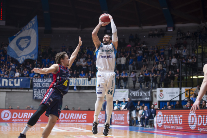 Piunti pareggia ancora una volta la contesa, poi Moraschini e Amato duellano a distanza con due canestri consecutivi a testa. L’Urania prova la spallate e con l’appoggio vincente di Landi tocca sette lunghezze di vantaggio. Nel momento di difficoltà dei canturini sale in cattedra Baldi Rossi: due triple del capitano riportano la S.Bernardo-Cinelandia a contatto, con Hickey che dalla lunetta sigilla l’ennesima parità a 5 minuti dalla fine. Potts consegna il vantaggio all’Urania a 90 secondi dalla fine, ma Nikolic ai liberi è perfetto ed è di nuovo parità prima dell’ultimo giro di orologio. Da lì in poi il canestro lo trova solo Piunti, che con l’1 su due ai liberi, consegna la vittoria all’Urania 84-85.