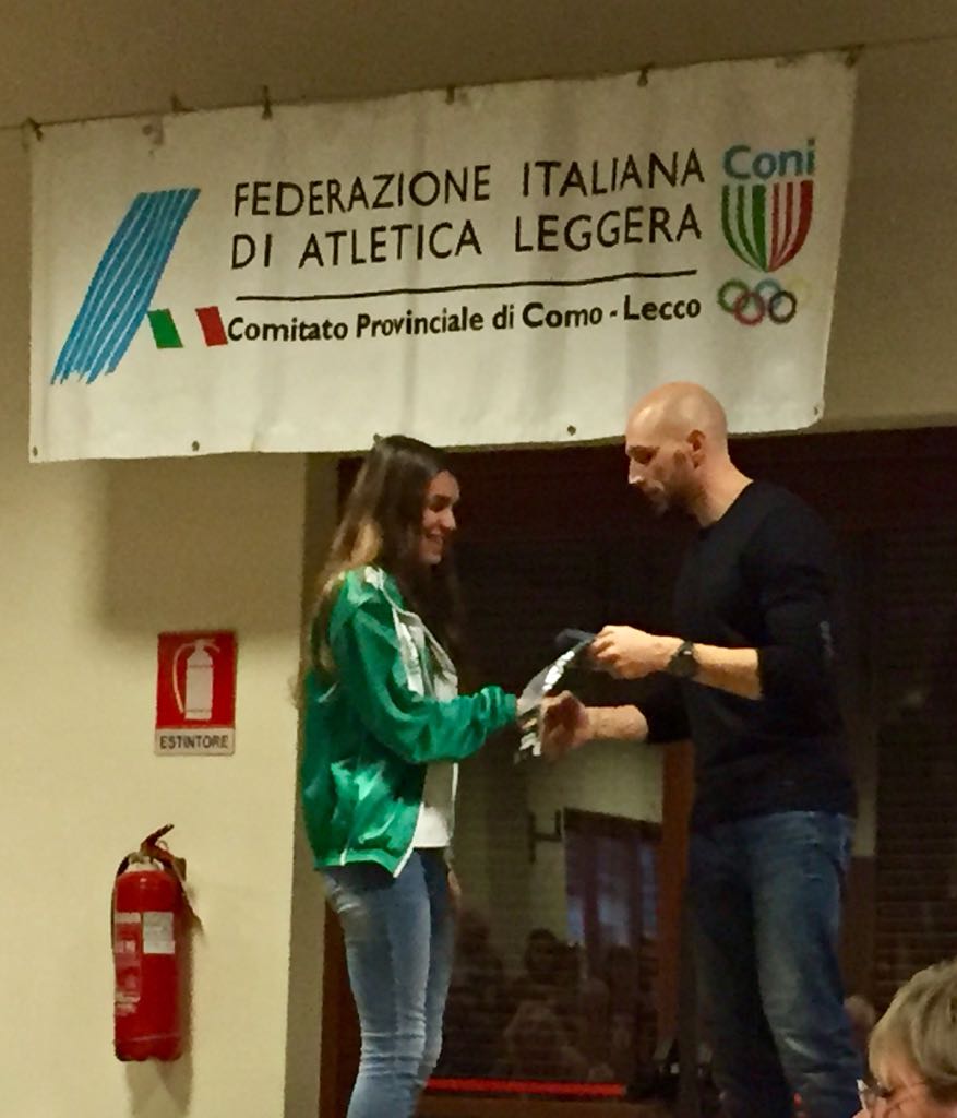 Domenica 7 gennaio 2018 si è svolta come di consueto la festa dell’atletica organizzata dal comitato provinciale Como-Lecco della Federazione Italiana Atletica Leggera (Fidal) presso il centro sportivo ad Anzano del Parco. Sono stati ben tre biancoverdi premiati: Riccardo Pini per il titolo regionale di salto in alto indoor, Ilaria Oricchio nell’ambito del Memorial “Prof. G. Balatti, 10^ edizione, ha vinto nella categoria ragazze. Infine Monica Crippa si è classificata terza nel trofeo 3 lanci.