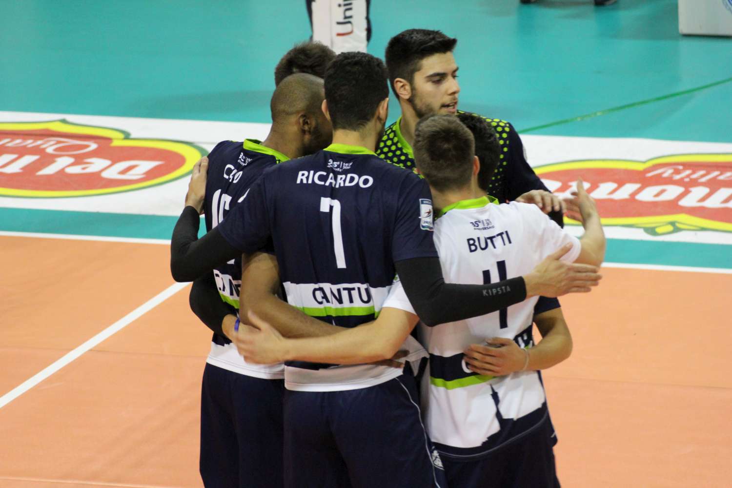 Il 2017 del Pool Libertas Cantù si conclude come meglio non poteva. Ultima gioia del 2017. Vittoria per 3-1 contro una squadra difficile da affrontare come il Pag Taviano. Coach Cominetti deve rinunciare a capitan Monguzzi ancora dolorante alla schiena. Di conseguenza schiera il giovane Frattini in diagonale con Robbiati. Baratti in cabina di regia, Caio opposto, Cominetti e Ricardo schiacciatori. Suraci inserito nel corso del match, Butti libero ma ancora alle prese con la distorsione alla caviglia. Coach Licchelli scegli Piedepalumbo palleggiatore, Bigarelli opposto, Astarita e Ruiz schiacciatori, Torsello e Smiriglia centrali, Percoco libero. Il Pool Libertas parte concentrato. In un attimo si porta 6-1 guidato da Caio e da un buon turno al servizio di Cominetti. Coach Licchelli chiama subito il suo primo time-out. Taviano prova a rosicchiare qualche punto ai padroni di casa ma i canturini non mollano. Due errori dei suoi costringono il coach ospite a fermare nuovamente il gioco (15-9). Al rientro in campo un ace di Cominetti sancisce il massimo vantaggio interno (17-9). Si continua a lottare su ogni pallone. Tuttavia un buon turno in battuta di Ruiz permette al Pag di riavvicinarsi (21-17). Al rientro in campo i padroni di casa riprendono in mano il servizio e una veloce out di Torsello gli consegna il primo set point (24-18). Un’invasione in attacco di Bigarelli vista al videocheck consegna il set a Cantù alla seconda occasione (25-19). A inizio secondo set è un ace di Bigarelli a rompere la parità. E un attacco out di Caio costringe coach Cominetti a fermare il gioco (5-8). Robbiati e Caio riportano sotto i canturini. La parità viene raggiunta a quota 9 con un ace di Baratti. Un attacco mani out di Caio ed è sorpasso. Coach Licchelli chiama il time-out (10-9). Si prosegue punto a punto, fino ai due errori in attacco degli schiacciatori pugliesi che permettono a Cantù di agguantare il doppio vantaggio (17-15). Taviano, però, non molla. La parità a quota 18 è raggiunta da un muro di Smiriglia su Suraci. Caio la mette a terra, e coach Licchelli ferma tutto (20-18). Ancora l’opposto brasiliano protagonista per il 23-20. Un attacco out e un muro di Robbiati su Bigarelli e il set è chiuso (25-21). Il terzo set inizia con le due squadre in parità, fino all’infrazione di Ricardo e alla veloce di Torsello che mandano il Pag avanti. Coach Cominetti ferma il gioco (8-11). Ricardo e Robbiati provano a rosicchiare qualche punto (10-12) ma Torsello e Ruiz li ricacciano indietro. Coach canturino costretto a chiamare il suo secondo time-out (10-15). Il Pool Libertas lotta ma non riesce a ricucire lo strappo. Anzi, aumenta sotto i colpi di Astarita e Bigarelli (14-22). Un ace di Suraci e i canturini recuperano ma coach Licchelli ferma tutto (17-22). I padroni di casa continuano a martellare dai nove metri. E il coach pugliese chiama anche il suo secondo time-out (20-23). Ruiz consegna il primo set point ai suoi. Il parziale viene chiuso dallo stesso schiacciatore spagnolo dopo un’incredibile rimonta canturina (23-25).