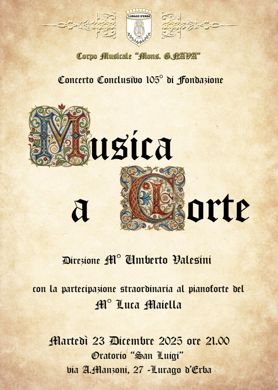 Alle 21 di oggi, martedì 23 dicembre, il concerto celebrativo si terrà nella Sala della Comunità dell’Oratorio San Luigi di Lurago d’Erba, chiudendo ufficialmente i festeggiamenti per oltre un secolo di attività ininterrotta. L’evento, che prenderà il via con le note energiche di Jubilateo, non sarà una semplice esecuzione, ma un vero e proprio viaggio attraverso la storia e l’identità di una delle realtà musicali più longeve del territorio. “Oggi non celebriamo soltanto la musica, ma 105 anni di storia, 105 anni di passioni intrecciate, di volti, di note che hanno accompagnato la vita di un’intera comunità. La nostra”, dichiara il presidente Paolo Conti. “La musica è la nostra voce e, dopo 105 anni, quella voce è più forte che mai. In ogni nota che eseguiremo, c’è il respiro di chi c’è stato e la promessa di chi verrà. ‘Musica a Corte’ è un invito a riscoprire insieme quel senso di appartenenza e gioia condivisa che ci lega alla comunità di Lurago d’Erba e che ci responsabilizza. Oggi più che mai ci sentiamo responsabili di infondere passione, ma soprattutto costruire un futuro luminoso. Sarà una festa sonora indimenticabile”. Ha affermato il direttore artistico e musicale del corpo musicale, maestro Umberto Valesini, che dirige la società dal 2016.